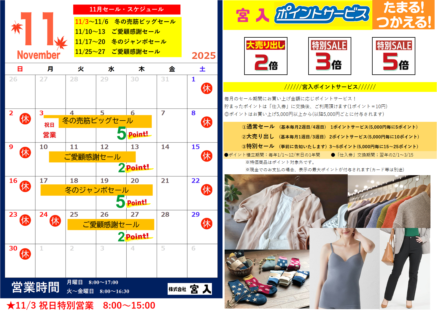 11月セールカレンダー&宮入ポイントサービス